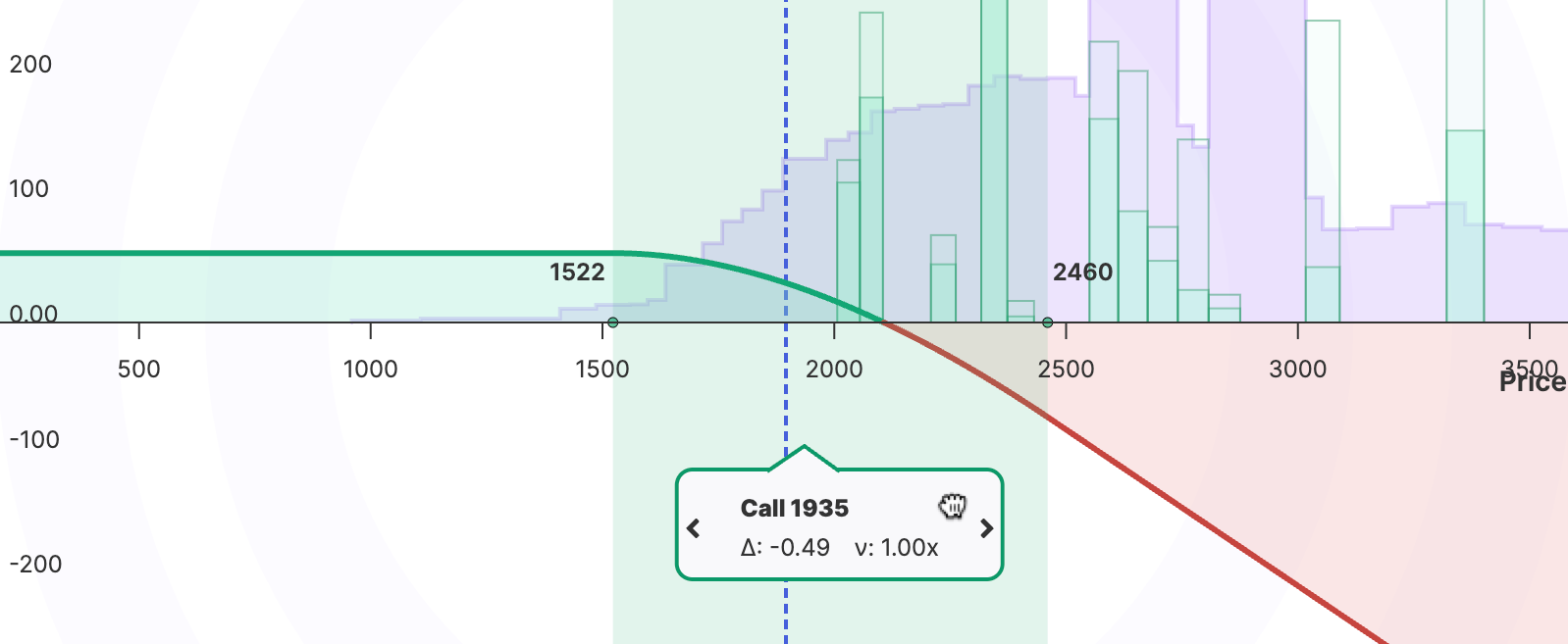 - This is a negative-delta strategy, meaning it profits from price declines and loses if the token price rises.