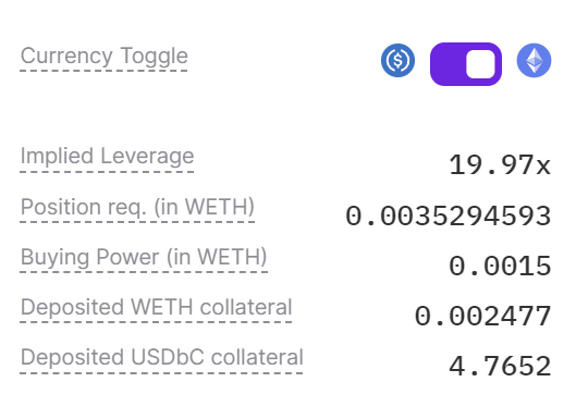 On Panoptic, buying power and collateral are easily monitored on the positions’ dashboard. The platform displays buying power in USD and buying power usage as a percentage, indicating how much of the total buying power is engaged in active trades.