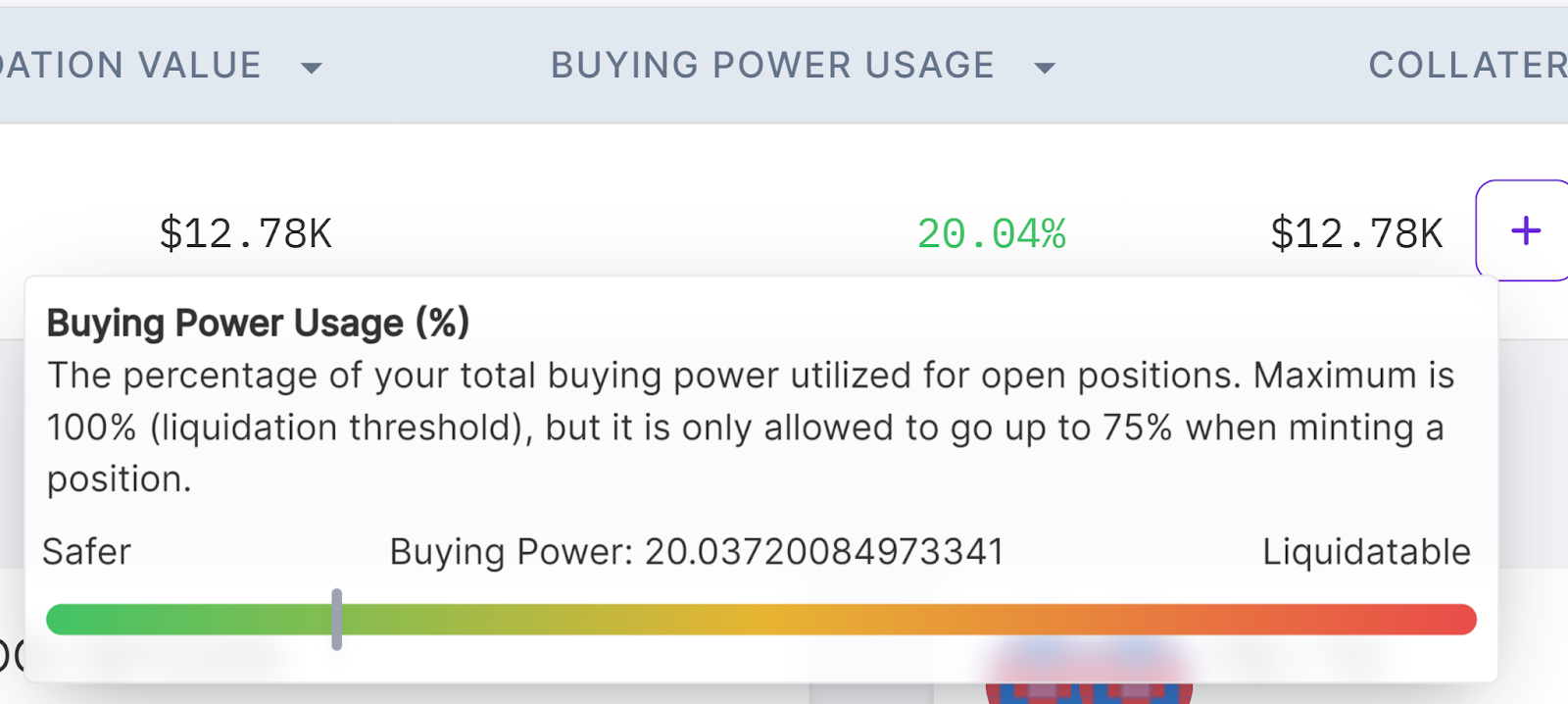 When buying power exceeds 100%, the trader’s account becomes liquidatable because their outstanding collateral requirement surpasses the value of their collateral.