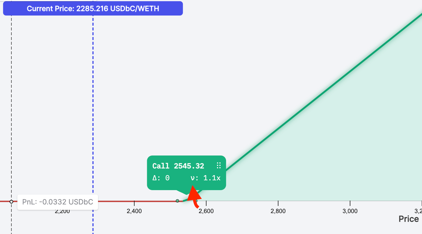 Consider an ETH call option with a $2,000 strike purchased in Panoptic. Over a single block, suppose this option accrues a base amount of streamia equal to $0.01. With a spread of 3x, the total cost becomes $0.03. This cost consists of $0.01 from the base Uniswap fees plus $0.02 from the Panoptic spread, demonstrating how the spread effectively increases the cost associated with the option's base streamia.