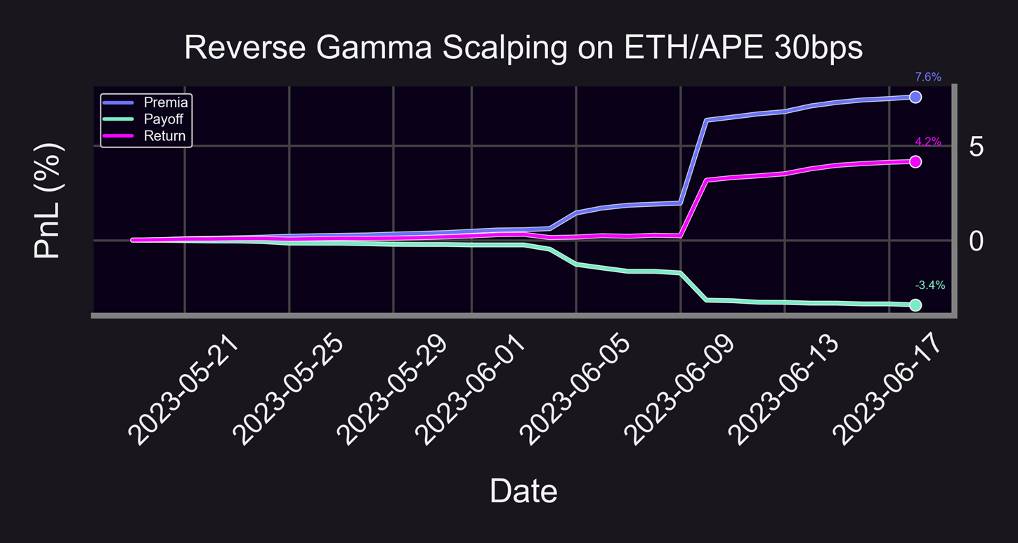 For demonstrative purposes, we perform a backtest of a reverse gamma scalping strategy on Uniswap: